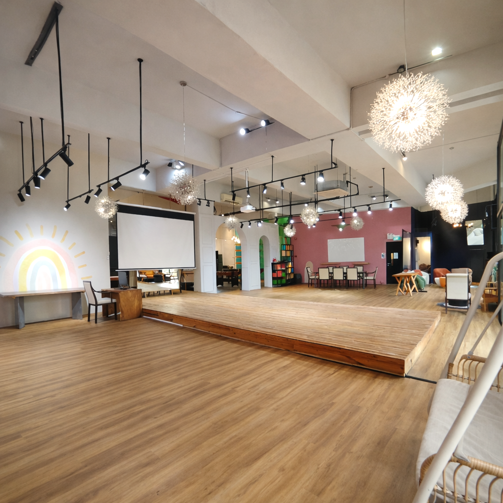 The venue can be used to host parties, gatherings, meetings, presentations, workshops, photo/video shoots, and other activities.